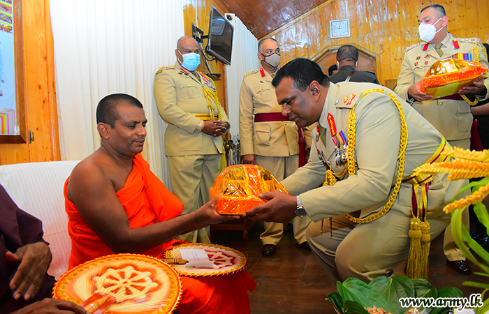 The newly-appointed Commander Security Forces - East Major General Channa Weerasuriya symbolically accepted his new appointment, placing his signature for an official document at the auspicious minute amidst chanting of 'Seth Pirith' by members of the Maha Sangha. Later on, the Commander planted a sapling in the Headquarter premises to add memories to his inauguration of the new office.