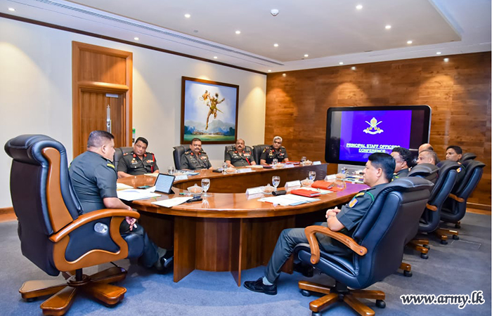 General Shavendra Silva, Chief of Defence Staff, Commander of the Army and Head of the National Operations Centre for Prevention of COVID-19 Outbreak (NOCPCO) met the Principal Staff Officers (PSOs) of the Army Headquarters for the first time in the New Year today (25) and exchanged views on proposed strategies for organizational advancement and future prospects for the country's largest manpower organization.