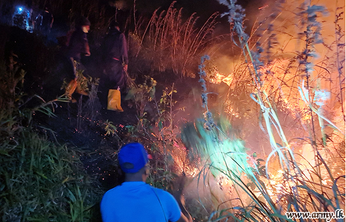 On the directions of the Commander, Security Forces-Central and under the supervision of the Colonel Sumal Hemarathne, 581 Brigade Commander, troops fought hard and brought it under control. |