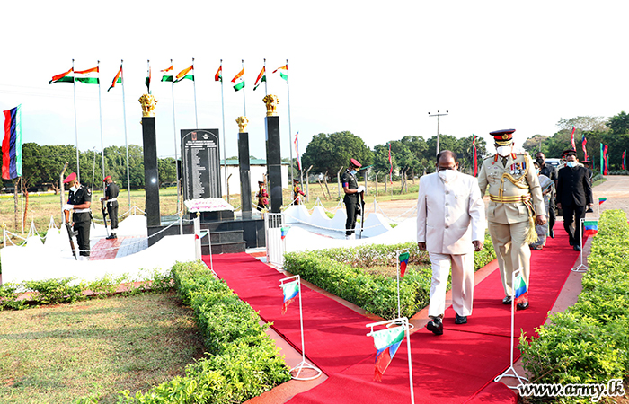 Major General Priyantha Perera, Commander Security Forces - Jaffna was among the distinguished guests invited to place floral wreaths to the memory of fallen IPKF Jawans in Palaly, Jaffna on account of the 72nd Indian Republic Day on Tuesday (26) .
