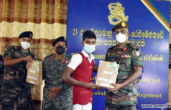 Donors, Mrs Priyantha Gamage resident in New Jersey, USA, Dr Thushara Lal in Melbourne, Australia, Mr Subramanium Ravindradas in Canada and Dr Seba Jayamaha from Wattala came forward to support the students for their higher studies at the request of the Commanding Officer, 23 VIR.