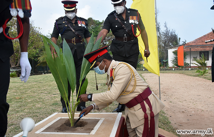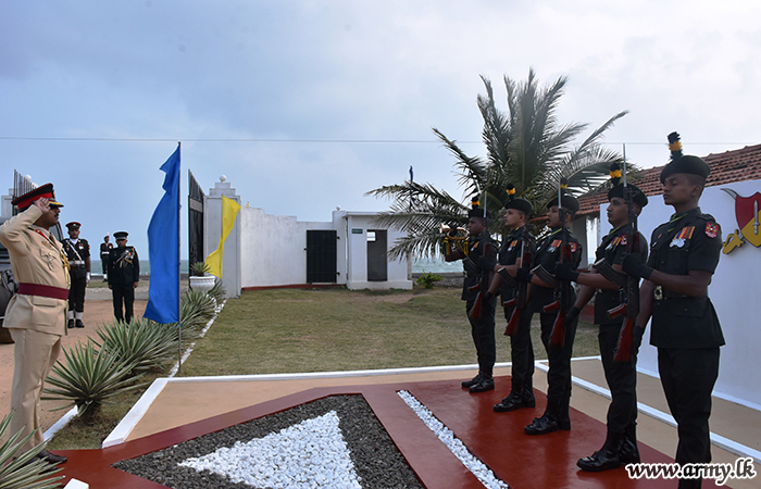 Troops of the 4 Sri Lanka Sinha Regiment awarded a Guard Turnout salute and honoured him on arrival at the main entrance to the Brigade HQ.