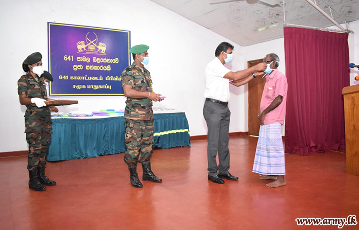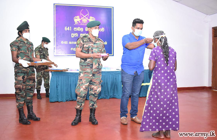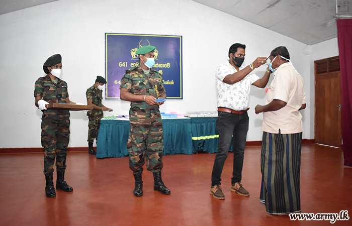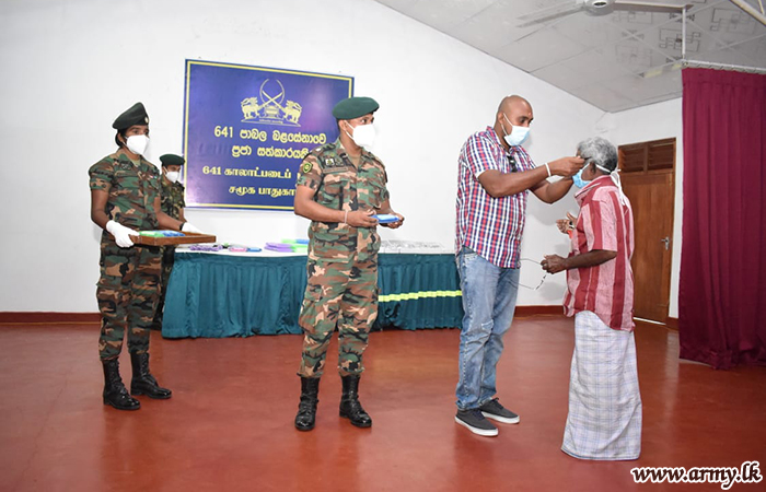 Following financial support received from a donor, the 641 Brigade of the 64 Division under the guidance of Major General Jagath Rathnayake, Commander, Security Forces -Mullaittivu organized a free distribution of 250 spectacles to visually-impaired needy civilians in Oddusudan area on Friday (29) at the 64 Division HQ with arrangements, kept in place by Colonel Janath Jayawardana, Commander, 641 Brigade.