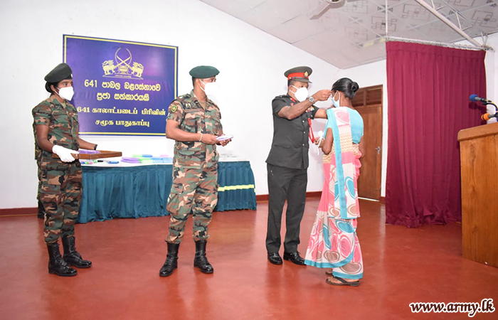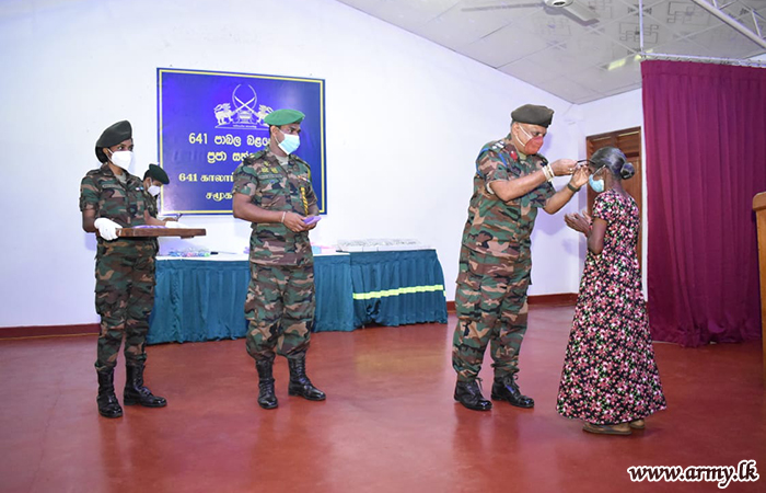 This Community Project launched by the 641 Brigade at first saw opticians and medical officers examine their eye sights before the use of spectacles was recommended after inviting them. It was a conceptual direction, given by Major General Manjula Karunarathe, General Officer Commanding, 64 Division who also took part in the distribution as the Chief Guest at the invitation of the 641 Brigade Commander.