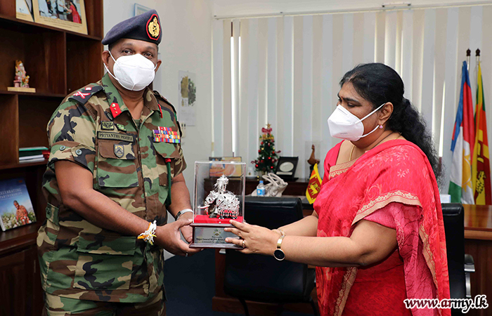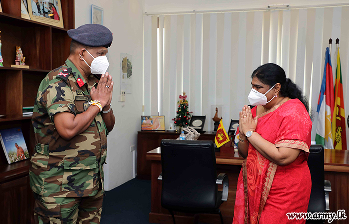 The recently-appointed Commander, Security Forces - Jaffna, Major General Priyantha Perera made a courtesy call on the Northern Province Governor, Hon. Mrs. P. S. M. Charles on Wednesday (3) and had a cordial meeting afterwards with Mr Kanapathipillai Maheshan, District Secretary for Jaffna.
