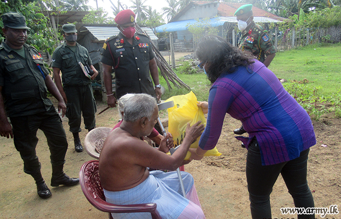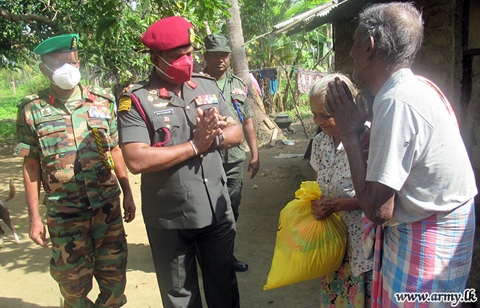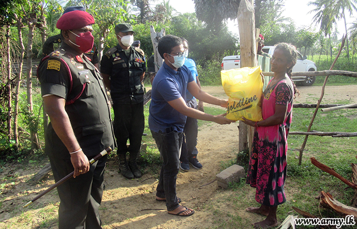 Family members of Major General Upali Rajapaksha, General Officer Commanding, 68 Division donated dry ration packs to needy families in Kombavil and Manduwil areas in 682 Brigade's responsibility and poor families in Sugandhipuram, Theravil areas in 681 Brigade who have been affected due to the pandemic lockdown on 30 January.