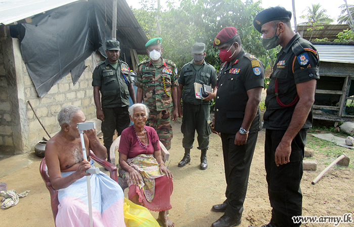 Colonel D.R.N Hettiaracchchi, 681 Brigade Commander and a few officers and other ranks attended the venue where the 68 GOC and his family members carried out this charity project by visiting each doorstep and distributing the relief packs. |