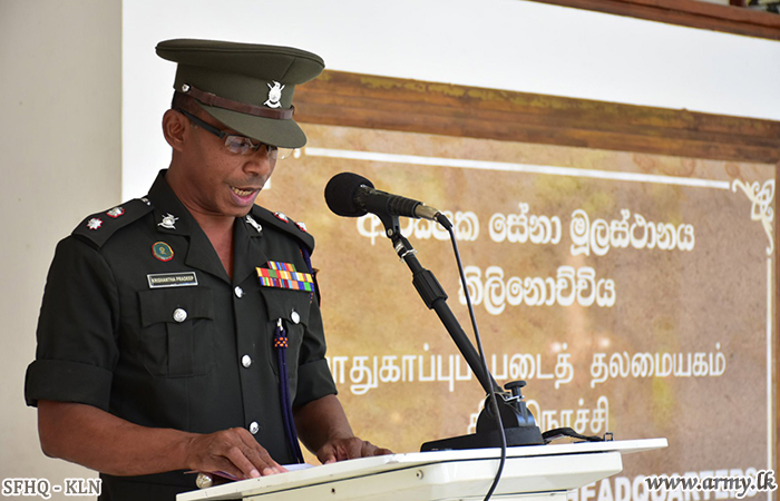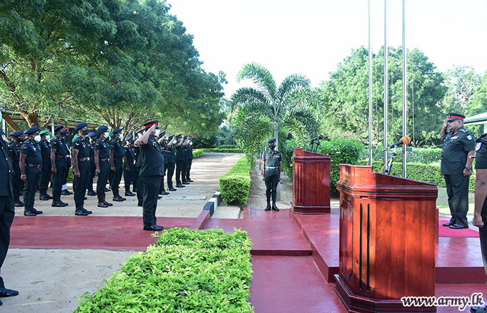 All officers and other ranks at the SFHQ-KLN assembled there and followed formalities as mentioned above. On behalf of the Kilinochchi Commander, the National flag was hoisted by Brigadier Admin and Quartering of the Security Force Headquarters-Kilinochchi, Brigadier Deepal Hathurusinghe. Then followed the two-minute silence to remember all patriots and War Heroes who scarified their lives for the noble cause of defending the freedom, unity, sovereignty and territorial integrity of the Mother Sri Lanka. The Staff Officer 1 (Admin) of Security Force Headquarters (Kilinochchi).