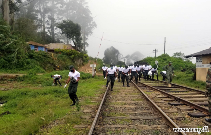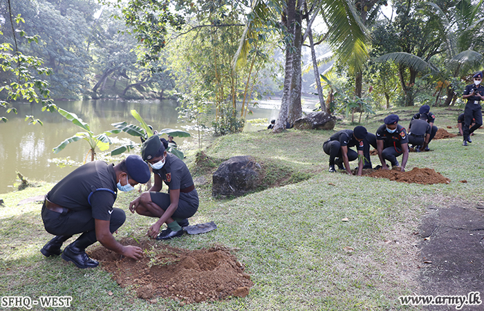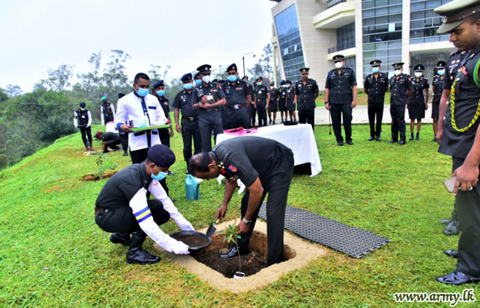 The Deputy Commandant, Brigadier Anil Peiris on behalf of the SLMA Commandant addressed the gathering and highlighted the importance of the Independence Day. Afterwards, a few intakes of Officer Cadets participated in a cleaning drive along the railway line from Idalgasinna to Haputale. Meanwhile, a parallel cleaning project that continued covered the Ayurvedic Hospital, Diyathalawa and Viharakele Temple and it was done under the supervision of the Commanding Officer- Admin Wing, Colonel Varna Fernando and CI - Military Training Wing, Colonel Kaminda Silva. The tree plantation in the camp premises marked the culmination of the day's programme.