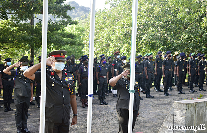 In the meantime, the Vijayabahu Infantry Regimental Centre launched a sequence of events on 4 February 2021 with the participation of Deputy Centre Commandant, Staff Officers and Other Ranks to mark the Independence Day. The programme commenced with hoisting of the National Flag by the Deputy Centre Commandant of the Vijayabahu Infantry Regiment, Colonel Rukshan Kannangara and a two-minute silence in honour of fallen war heroes who scarified their lives for the noble cause of defending the freedom, unity, sovereignty and territorial integrity of the Mother Sri Lanka.