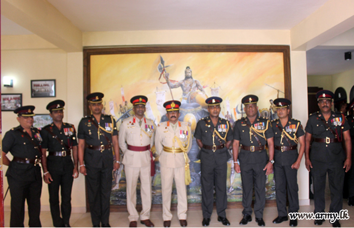 Featuring the traditional event, Major General Sisira Herath reviewed the Guard Turnout and then offered floral tributes to fallen war heroes who made supreme sacrifice. All Officers present then posed for a photograph with the day’s protagonist and afterwards, he was awarded a special memento by the Colonel of the Regiment. He also appreciated Major General Sisira Herath's dedicated and committed service to become a Two Star General for Archers' Flag Officers family.