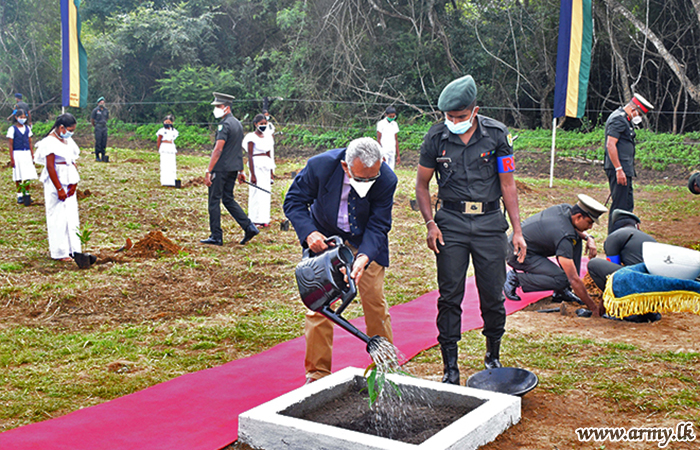 Ven Lindawewe Amarajothi Thero and representative priests of Hindu, Islam and Muslim religions, Major General Hemantha Bandara, Commander, Security Forces - Wanni, Divisional Forest Officer and the Range Forest Officer of Vavuniya Forest Conservation Department, 56 Division’s General Officer Commanding, Major General Nadana Dunuwila, Brigade Commander, 563 Brigade, Brigadier Panduka Perera, Navy Base Commander Punewa, Colonel General Staff, Civil Affairs Officer of the SFHQ-Wanni, Air Force Radar Squadron Commanding Officer Vavuniya Base, Civil Affairs Officer, 56 Division, Commanding Officer, CSD, Commanding Officers of 7 SLSR, 16 SLSR, 21 SLSR, OIC Mamaduwa Police Station, two principals of Bogaswewa and Mahakachchakodiya schools along with 25 school children, Grama Niladhari of Prappanmaduwa village and the villagers in Pirappanmaduwa village joined hands with one another and planted those saplings as a contribution to national forest conservation drive.