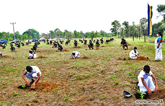 Security Force Headquarters-Wanni (SFHQ-Wanni) on account of 73rd National Independence Day with the support of the Vavuniya Forest Conservation Department, 7th Battalion Sri Lanka Sinha Regiment and 21st Battalion Sri Lanka Sinha Regiment troops under the 56 Division of the 563 Brigade launched the planting of 1000 saplings in and around Pirappanmaduwa village on Thursday (4).