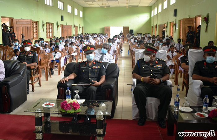 The distribution ceremony was graced by Mr Wimalanathan, District Secretary for Mullaittivu, Representative of the donor, Major General Manoj Lamahewa, General Officer Commanding, 59 Division, Officers, teachers, parents and Other Ranks. |