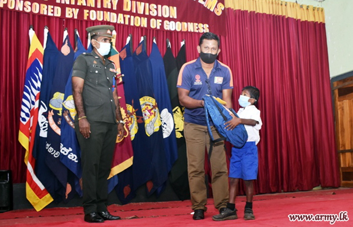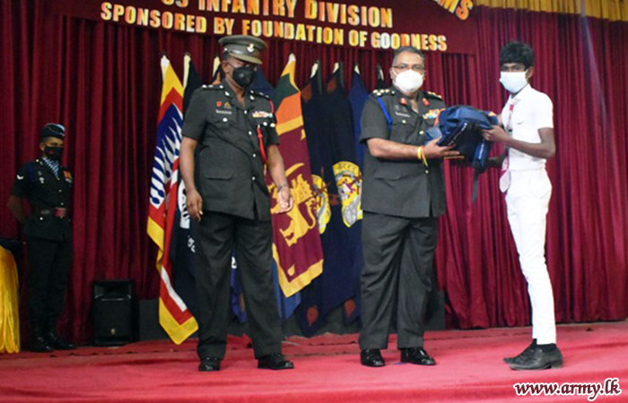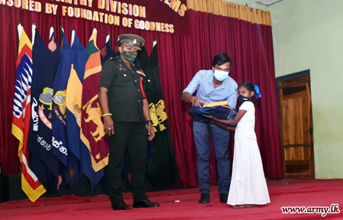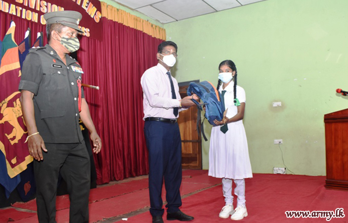 Organized by 591 Brigade HQ troops, commanded by Colonel Sujeewa Perera, the arrangement saw those students from low-income groups receive Rs 1500 in DSI cash vouchers for purchase of essentials and a stock of school accessories and books, needed for their studies. Selection of those students was done on the recommendation of school authorities and respective Grama Seva officials in relevant areas.
