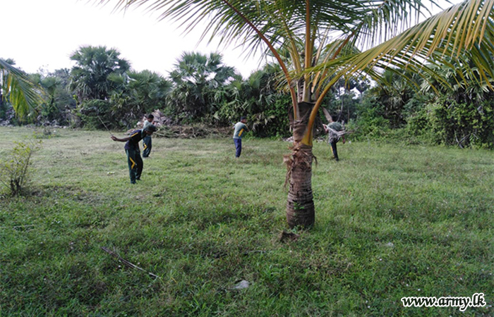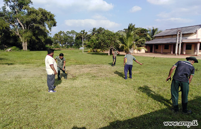 16 Sri Lanka Sinha Regiment troops of the 561 Brigade under the 56 Infantry Division of the SFHQ-Wanni conducted a 'Shramadana” campaign to clean up the Punida Anthoniya Aaley Church premises in Kanagarayankulam, together with assistants in the church on Monday (08).