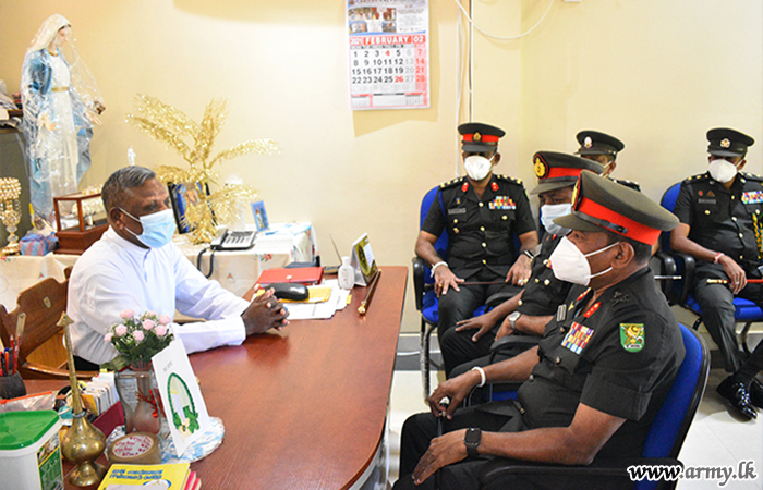 On the Second day, the Commander was honoured in a Guard Turnout at the 653 Brigade Headquarters followed by planting a sapling in the Brigade premises. Thereafter, the Commander Security Forces - Wanni visited 653 Brigade Headquarters and afterwards he visited the holy Madu Shrine and received religious blessings. Then the Commander attended a programme for distribution of school items to the students at School of Madu Sothiya Nagar. The visit concluded after visiting the 24 Gajaba Regiment camp.