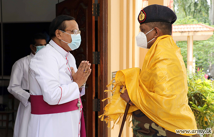 At first, he made a courtesy call on the Bishop of Church of South India in Jaffna Diocese Rt. Rev. Dr Daniel S. Thiagarajah and received his blessings at the historical Vaddukkodai church that was established in 1627 AD. During the interaction, he explained the series of civil-military coordination, being conducted by the troops in the Jaffna peninsula.