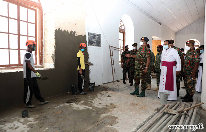 During the friendly interaction, the Security Forces Commander proposed his plan to convert the Vaddukoddai ground to be a national level cricket stadium, in which cricketers from the South and the North could play together while encouraging them to play tournaments and reflect reconciliation. Later, the Commander Security Forces - Jaffna inspected the church's ongoing renovation work, being driven by the troops.