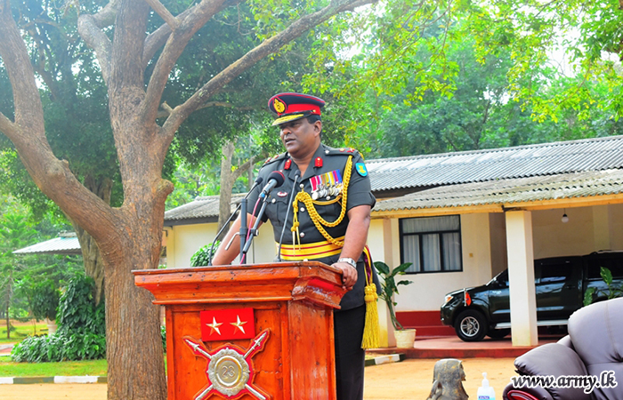 Addressing the troops, Major General Channa Weerasuriya focused on the importance of training in different professional aspects of the career and maintenance of the highest standards of discipline. During the all rank tea at the Gymnasium premises, the Commander Security Force (East) took time off to mingle with the gathering and inquired into their needs and other welfare measures and left a complimentary remark in the visitors' book thereafter.