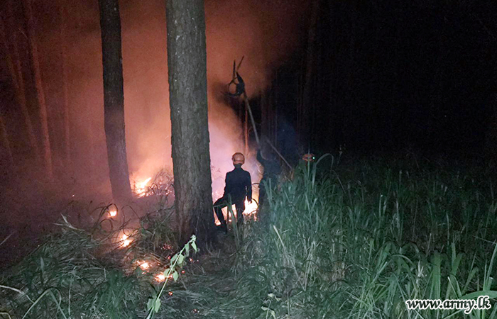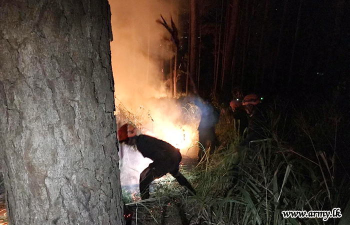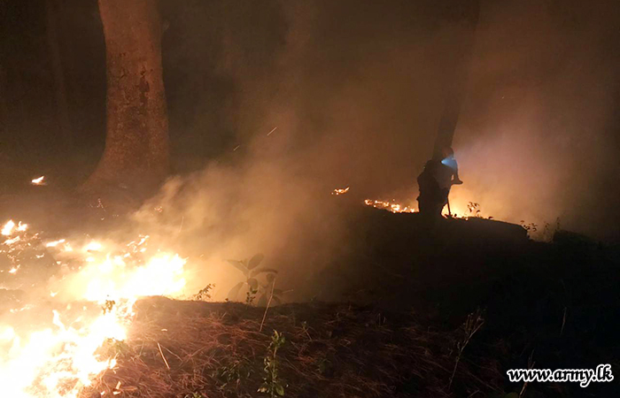 On the directions of the Commander, Security Forces -Central and under the supervision of Major General Sarada Samarakoon General officer Commanding of the 11 Division, troops of the 2 (volunteer) Sri Lanka Sinha Regiment took prompt action to douse the fast spreading fire. |