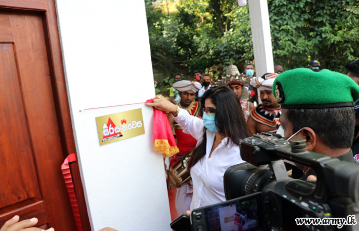 Major General Kumara Jayapathirana, Commander Security Forces –Central enabled the technically-skilled engineering and other troops to complete the project with funds and resources, made available by the 'Sirasa Niwasa'. Brigadier Rohitha Rathnayake, Commander 111 Brigade graced the auspicious inaugural house-warming as the Chief Guest, together with Mrs Needra Weerasinghe, Head of the MTV and MBC Network representing the 'Sirasa Niwasa' programme on Saturday (13).