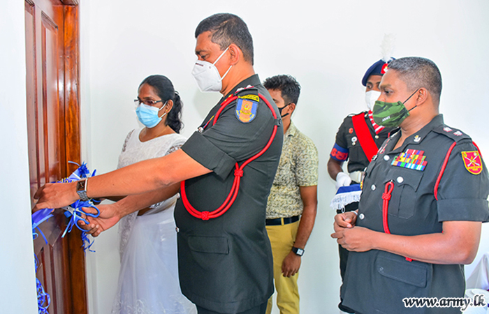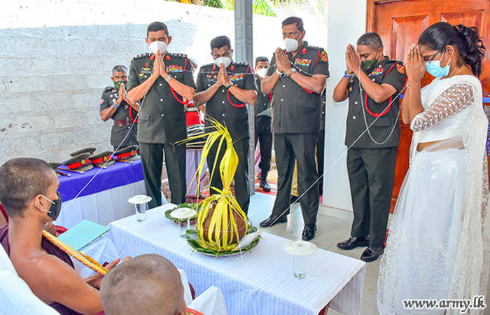 Under the project, 8 Sri Lanka Light Infantry troops constructed a new house for the family of a fallen Non Commissioned Officer in Wellawaya with the blessings of all in the Regiment. On Tuesday (11), the new house, built at a cost of Rs 1.5 m was vested in the family on the directions of Major General Wasantha Abrew, Colonel of the Regiment and Commander Security Forces-West during a brief ceremony, inclusive of plaque unveiling, milkpot boiling and other rites and rituals.