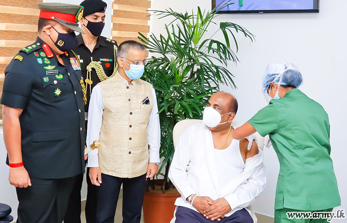 Hon Speaker of Parliament, Mahinda Yapa Abeywardene was one among the firsts to receive the jab on Wednesday (17) where Army medical teams were busy administering it to both Parliamentarians and Army personnel.
