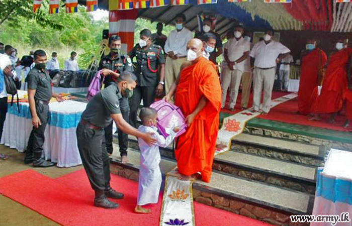 Wanni troops actively coordinated and organized a massive welfare project for the benefit of monks in temples, needy civilians, orphans, students and local residents Wednesday (17) after gathering all of them to the Kiralagala Purana Viharaya in Puleliya area.