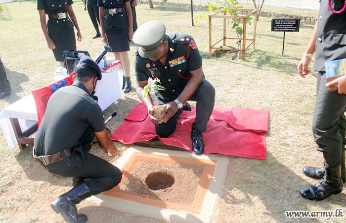 Before the start of the ceremony, Brigadier Indrajith Vithanarachchi, Lieutenant Colonel G.T.S Silva, Commandant, School of Ordinance planted saplingings inside the premises to mark the culmination of the Course and award of certificates and badges.