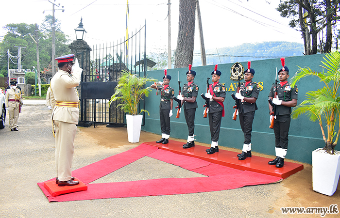 On his arrival at the School premises, the Chief Guest was warmly welcomed by the Commandant, SLAVFTS and was saluted in a Guard Turnout and invited to review the parade, presented by Major M.W Wishwamithra, Chief Instructor SLAVFTS and those Warrant Officers. The Chief Guest afterwards closely reviewed the parade and received the salute of those students from the saluting dais.