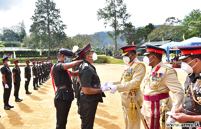 A total of 31 Warrant Officers who completed the 'Quarter Master Commission Course No - 23' at the Army School of Logistics (ASL) in Trincomalee had their Passing out Parade (POP) on 10 March 2021 at the Sri Lanka Army Volunteer Force Training School (SLAVFTS) at Diyatalawa where they were adorned with their probation insignia.