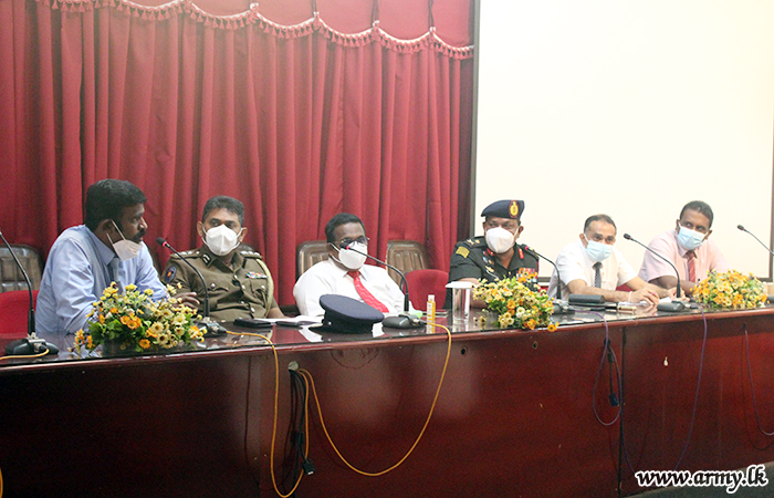 Meanwhile, the Commander, Security Forces-Wanni, Major General Hemantha Bandara as the Overall Coordinator of Prevention of COVID - 19 for District of Vavuniya took part in a meeting at the District Secretariat Office - Vauniya on 01 February 2021, together with Regional Director of Health Services, government officials, wholesale traders with officers of the Army and the Police.