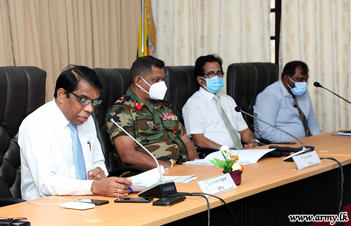 Major General Priyantha Perera, Commander, Security Forces - Jaffna in his capacity as the Chief Coordinator of COVID-19 prevention work in the Jaffna District presided one more reviewing conference with all stakeholders at the District Secretary’s office on Friday (12).