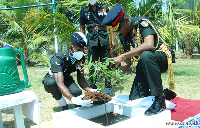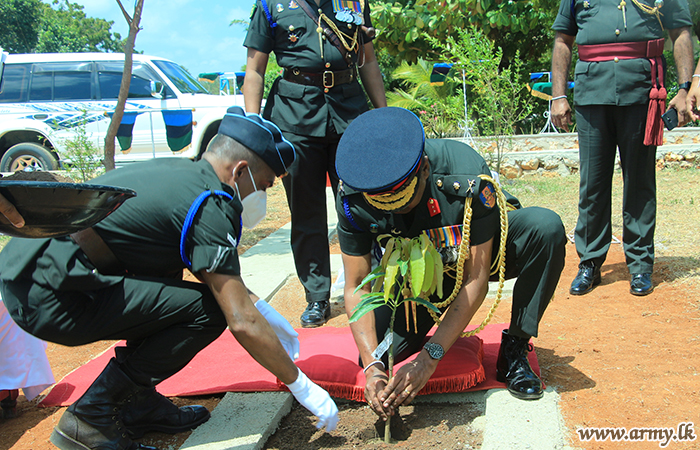 He was welcomed by the Commanding Officer 6 SLSC (IT), Lieutenant Colonel S.H.L.D Fernando where he was accorded a Guard Turnout by the troops of 6 SLSC. Then he planted a sapling to mark his visit.