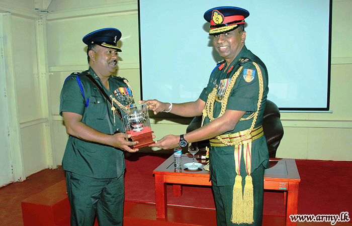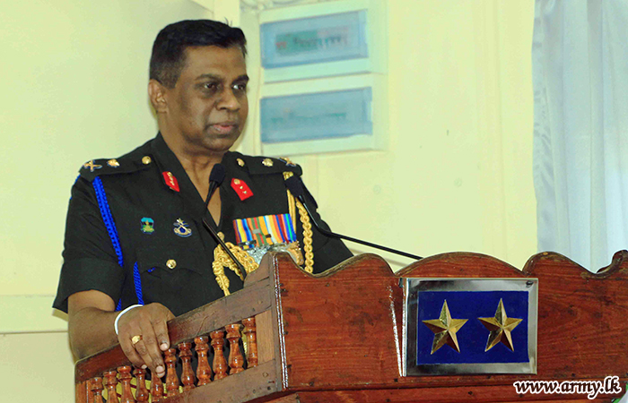 After the discussion with the Jaffna Commander, the visiting Major General Ashoka Peiris returned to the 3 SLSC HQ where he was invited to leave memories by planting a sapling to mark his visit. Subsequently, Colonel Commandant addressed the troops at the Other Ranks’ Mess. Towards the end of the visit Commanding Officer and Colonel Commandant exchanged mementos.