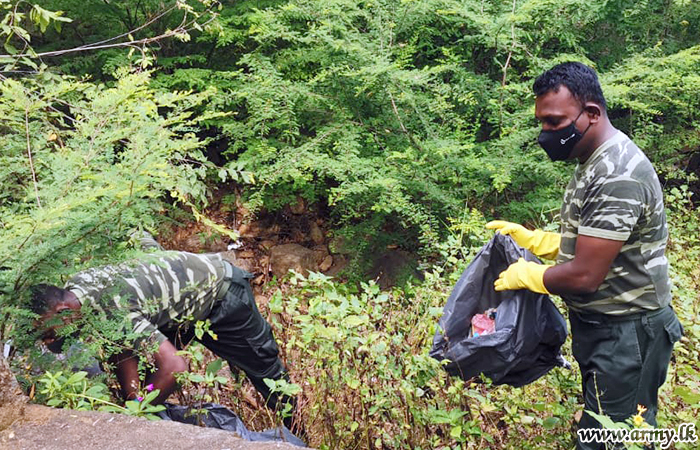 23 Gajaba Regiment (GR) and 3 Sri Lanka National Guard (SLNG) troops under command to the 122 Brigade of the 12 Division of the Security Force HQ - Central jointly launched a community-oriented project by cleaning the road passage to Vedasitikanda in Kataragama and its surrounding areas on Sunday (14).