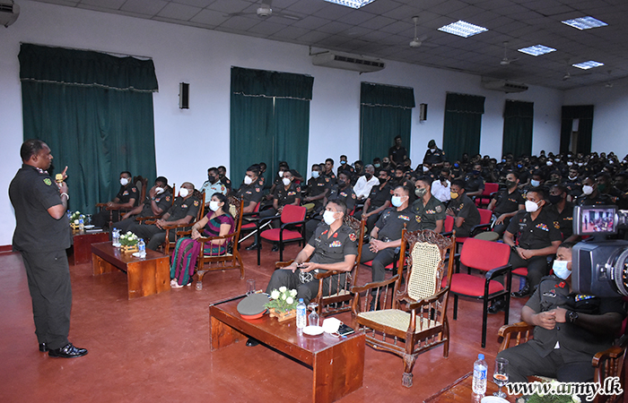 One more educative session on "Personality Development & Drug Prevention" was conducted at the HQ battalion of Sri Lanka Sinha Regiment on Thursday (18) on the directions of the Director General Rehabilitation in keeping with guidelines given by the Commander of the Army.