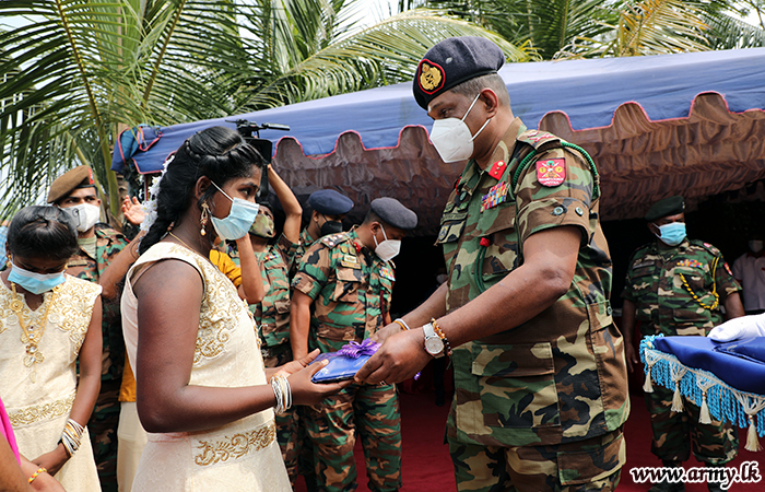 The reputed donor, Mr. Kumara Weerasooriya will provide financial cost of the materials for construction work at the request of the Commander, Security Forces - Jaffna. 11 Sri Lanka Light Infantry troops under the supervision of the Commander 513 Brigade will provide much-needed manpower and technical expertise for the construction work. After the foundation-stone laying, the Commander Security Forces Jaffna distributed a dry ration pack and school items to the children of the beneficiary.