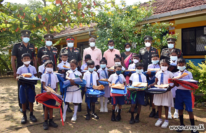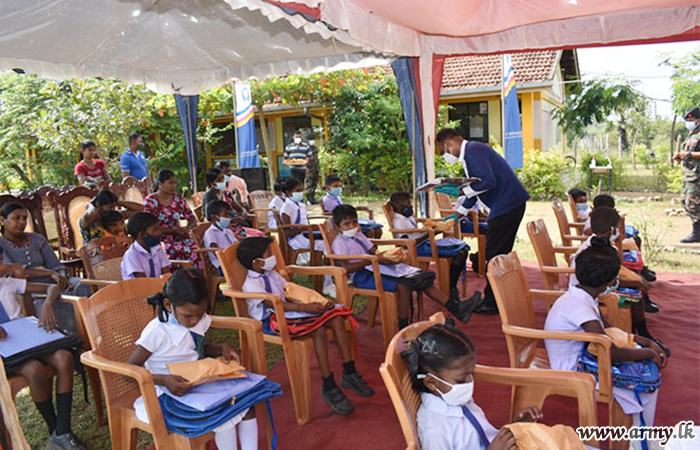 Selected 16 students attending Siraddikulam GTM School, Siraddikulam, Naddankandal were the beneficiaries of school accessories thanks to initiatives jointly taken by 65 Division, 652 Brigade and 10 Sri Lanka Light Infantry troops serving under the 65 Division of the Security Force Headquarters - Wanni (SFHQ-W).