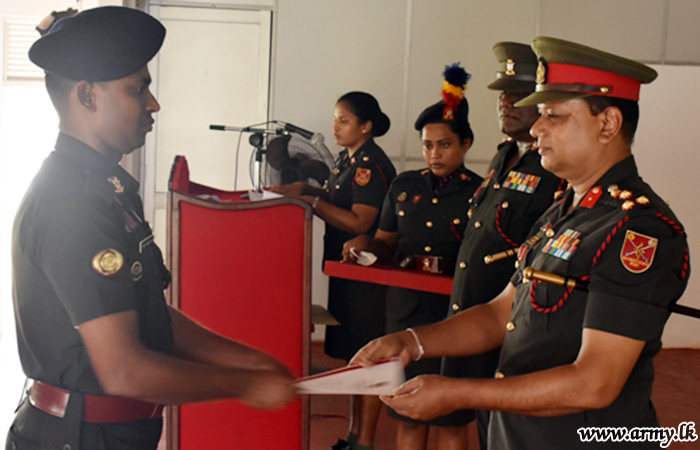 A Batch of 58 Senior Non Commissioned Offices of various Regiments of Sri Lanka Army who completed the course received their certificates from the Chief Guest. Staff Sergeant J.A.S.B Jayakody of 8th Regiment Sri Lanka Electrical and Mechanical Engineers was awarded as the Best Student of the course.