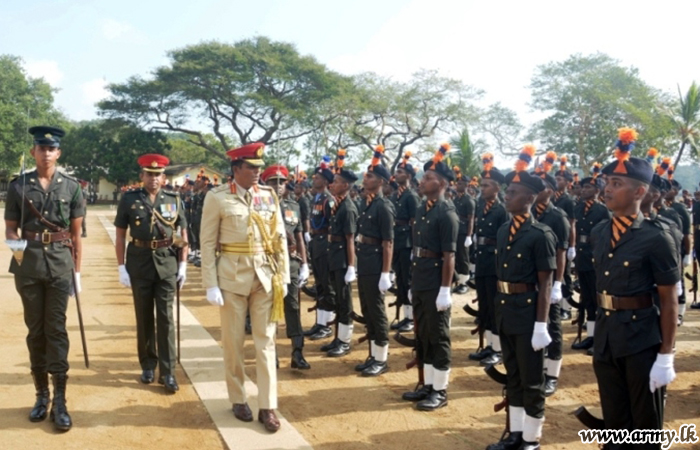 Three hundred and eighty one recruits, trained under the Recruit Course No 29 at the 4th Armoured Corps Recruiting Training Centre at Clappenburg, Trincomalee passed out during an elegant parade after successful completion their four-month long basic training on Tuesday (23).