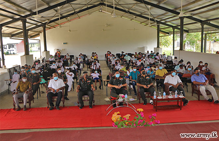 Colonel R.M.C Ratnayake, Colonel Coordination of the 21 Division joined the distribution ceremony as the Chief Guest at the Irattaperiyakulam National Youth Corps premises, together with representatives of sponsors for this civil-military cooperation project. 211 Brigade Commander, Colonel J.K.R Jayakody assisted the conduct of the distribution ceremony.