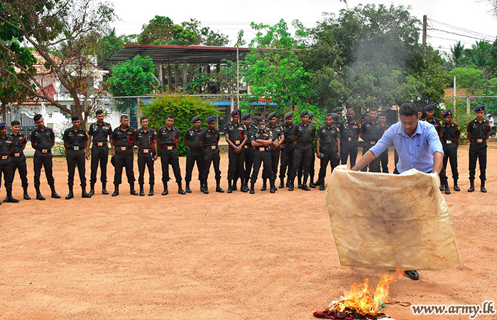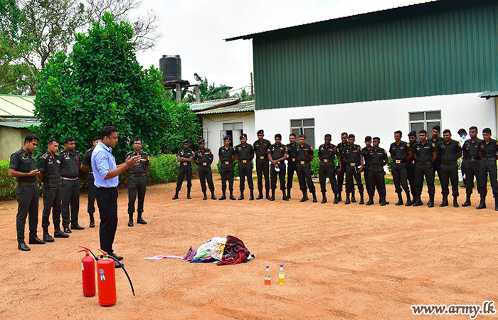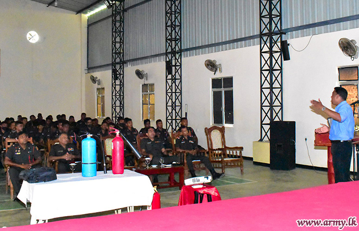 The Fire Officer Mr. Purushoth of the Fire Control Unit in Jaffna at the request of the General Officer Commanding, 57 Division, Major General Priyantha Jayawardena, delivered a lecture on ‘Fire safety and preventive measures’ to a gathering of 93 Officers and Other Ranks at the 57 Division HQ in Kilinochchi on Wednesday (24).