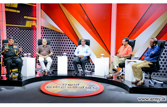 A panel of resource personnel, including General Shavendra Silva, Head of the National Operations Centre for Prevention of COVID 19 Outbreak (NOCPCO), Chief of Defence Staff and Commander of the Army, Dr: Asela Gunawardane, Director General of Health Services, Dr Sudath Samaraweera, Chief Epidemiologist, Dr. Ananda Wijewickrama and Prof. Athula Sumathipala contributed to the 'Derana' TV feature, ‘Aluth Parlimenthuwa’ this evening (31).