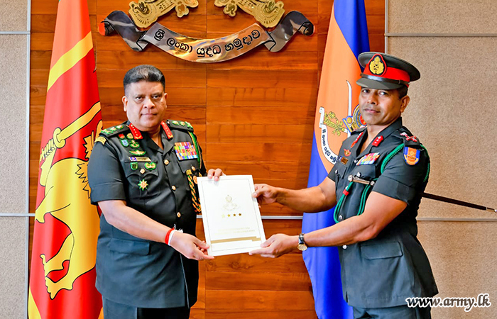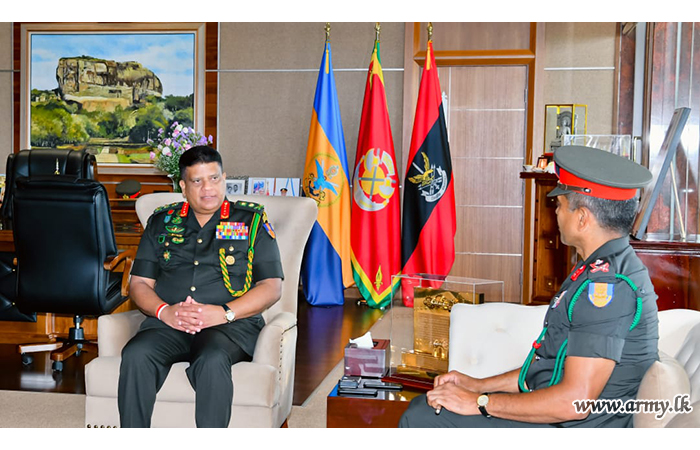 The Gemunu Watch-groomed one more proud products of the Army, Major General Ajantha Wijesuriya who has been serving as Brigadier Logistic at Logistic Command, Kosgama on the eve of his retirement from the Army received appreciative compliments from the Chief of Defence Staff and Commander of the Army, General Shavendra Silva after inviting the former to the AHQ on Tuesday (31) where the latter commended his dedicated services to the Army for more than three decades.