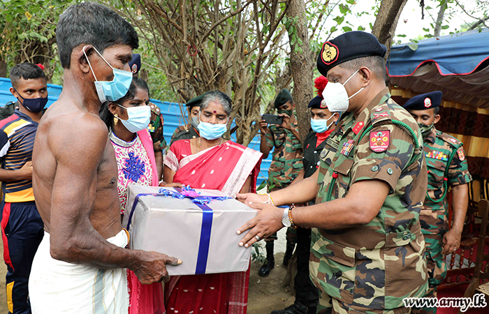 After the foundation laying ceremony, the Commander Security Forces Jaffna handed out dry ration packs among under privileged families in the area.