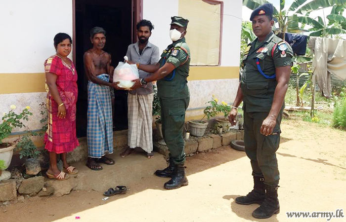 A combined effort of troops and the Commanding Officer, 13 Sri Lanka National Guard (SLNG), Major G.S.L Thushara on Wednesday (14) extending their hands of friendship and goodwill to more than 10 needy families in Muthiyankaddukulam area gave away dry rations and food varieties to them on account of the New Year festival.
