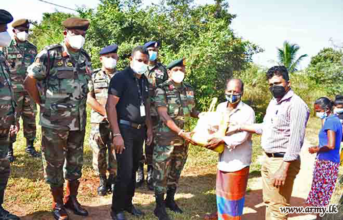 Troops of 11 Gemunu Watch (GW) and 5 (V) Gajaba Regiment (GR) on the instructions of the Commander, 62 Division, Brigadier Upali Gunasekera under the supervision of the Commander 623 Brigade, Brigadier Prabath Kodituwakku and Commanding Officers, 11 GW and 5 (V) GR organized the arrangements for distribution.
