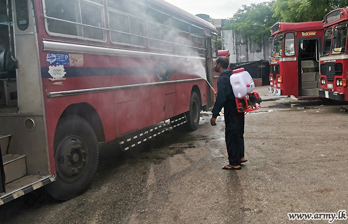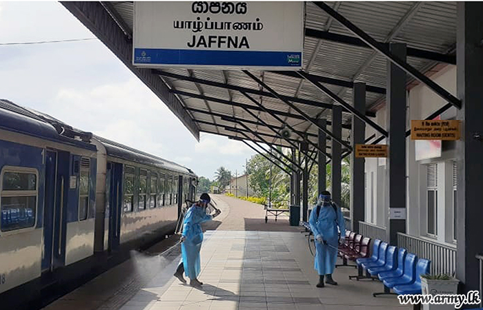 Accordingly, the Central Bus Stand, Railway Station, Public Market, Bazaar area, KKS road, Jaffna Teaching Hospital premises, general crowded areas, playgrounds and government office compounds were disinfected and thoroughly cleaned by Army troops under this sterilization project.